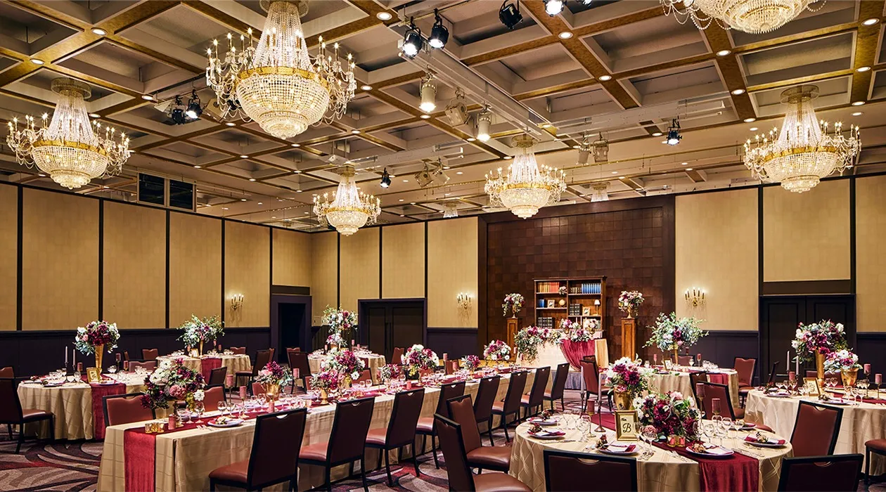 ホテルウエディングらしいフォーマルパーティをご希望のおふたりには、メインバンケット『グランデ』がおすすめ。